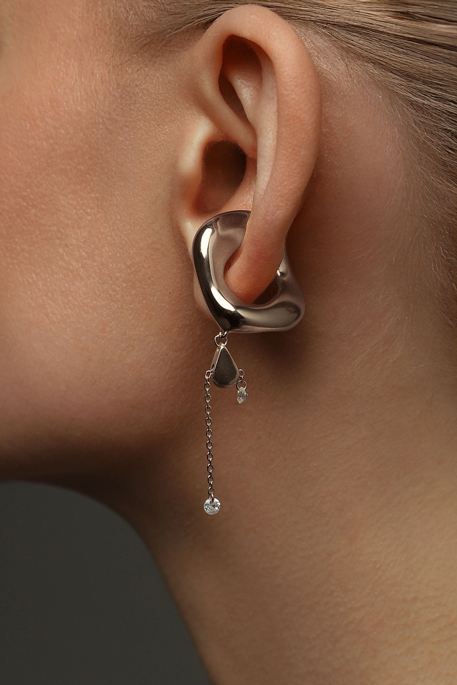 The sculpted base, seed-shaped pendant and two diamond drops form a sleek, recognizable silhouette. The Pepita ear cuff stands out with its refined, well-designed construction that allows you to transform your look in one simple move.